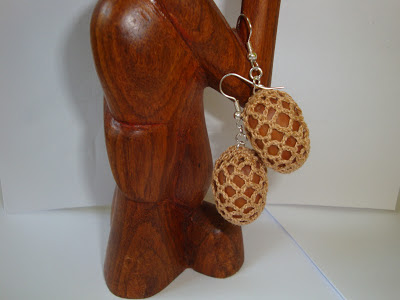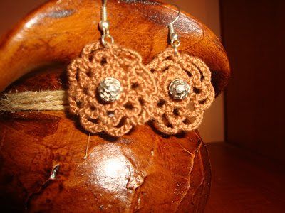 realizati din discuri de bumbac maro si margele de lemn.