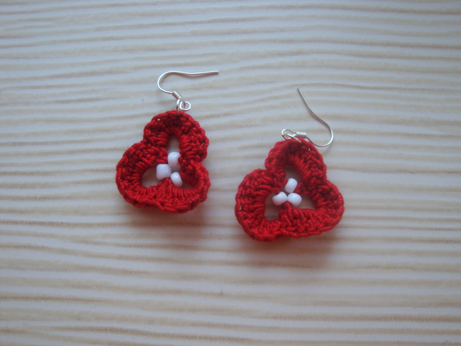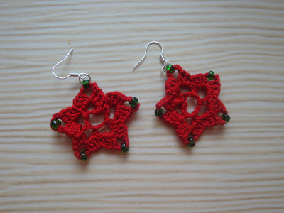 Cercei crosetati din bumbac rosu, potriviti pentru sarbatoarea Craciunului.