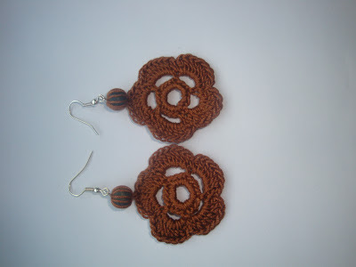 realizati din discuri de bumbac maro si margele de lemn.